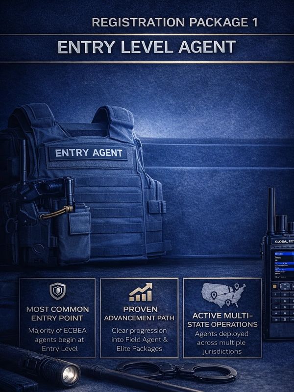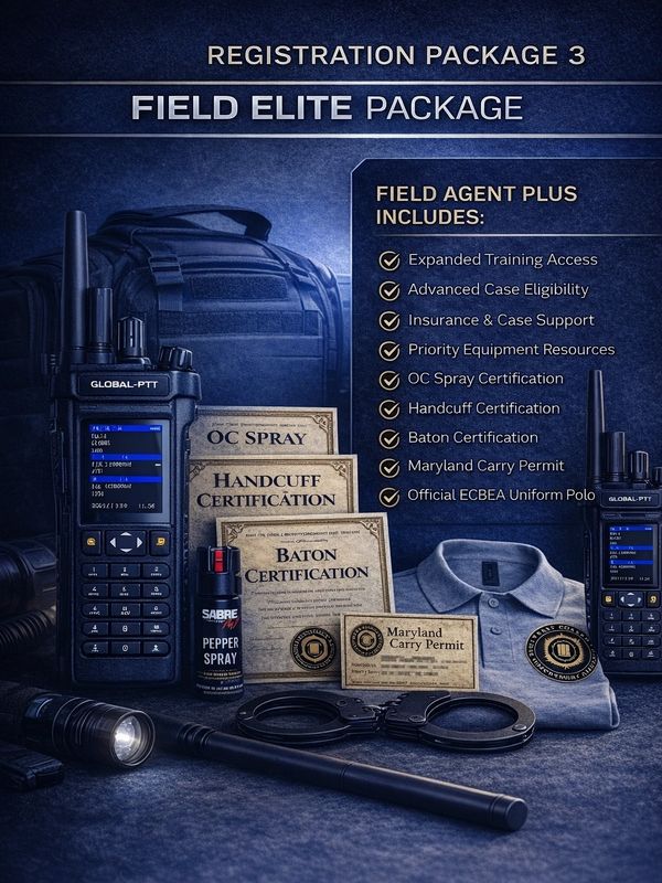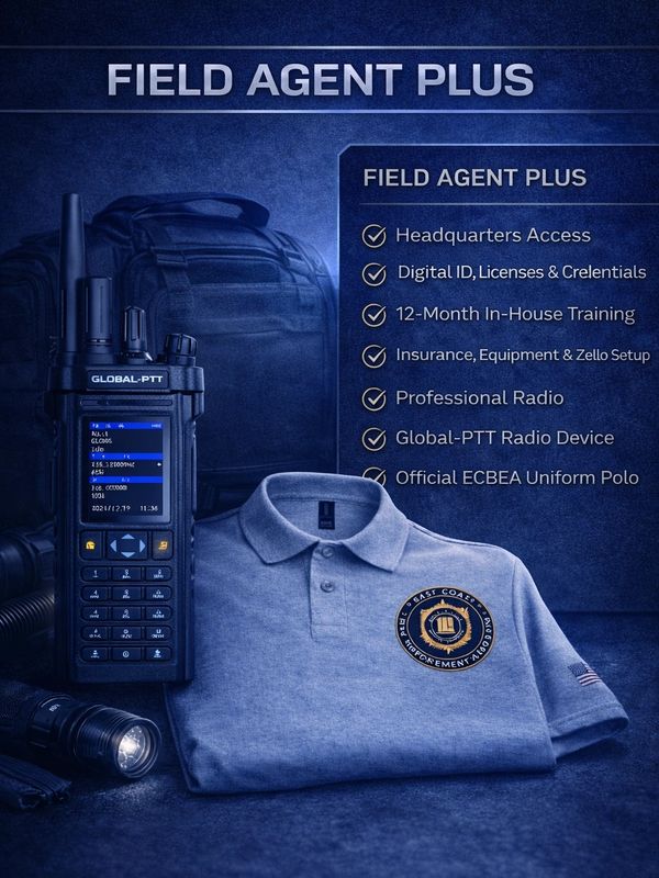 Package #2 is designed for applicants seeking issued communications equipment, official agency apparel, and structured onboarding, without unrestricted channel access. Channel permissions expand as the agent advances.